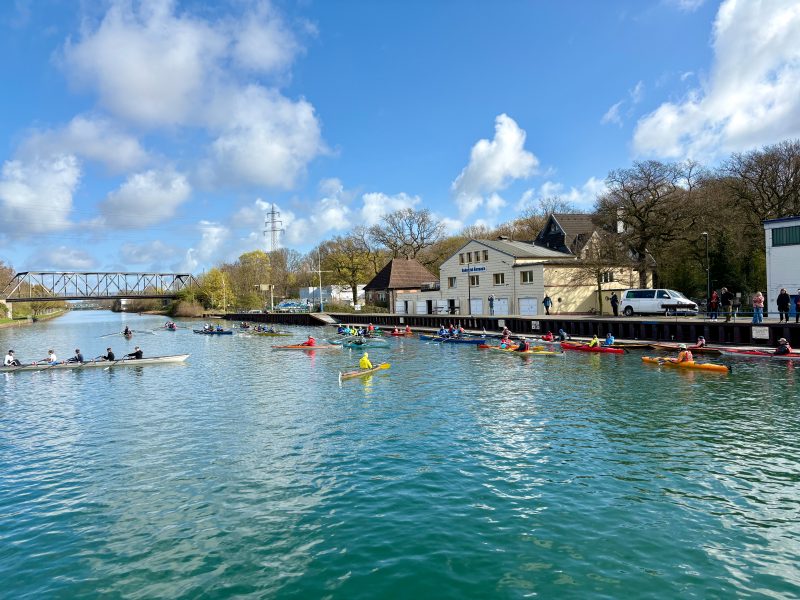 Pünktlich zur Zeitumstellung hieß es am vergangenen Sonntag wieder: Anrudern und Anpaddeln auf dem Dortmund-Ems-Kanal. Zur offiziellen Saisoneröffnung kamen alle Wassersportvereine im Dortmunder Norden zusammen – neben dem RC Germania auch der RC Hansa, der Freie Sportverein von 1898 und der 1. Dortmunder Kanu-Verein.